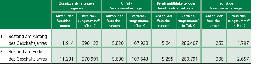 Die Verbindlichkeiten aus dem selbst abgeschlossenen Versicherungsgeschäft gegenüber Versicherungsnehmern beinhalten verzinslich angesammelte Überschussanteile in Höhe von 11,6 Millionen Euro (Vorjahr: 11,8 Millionen Euro).