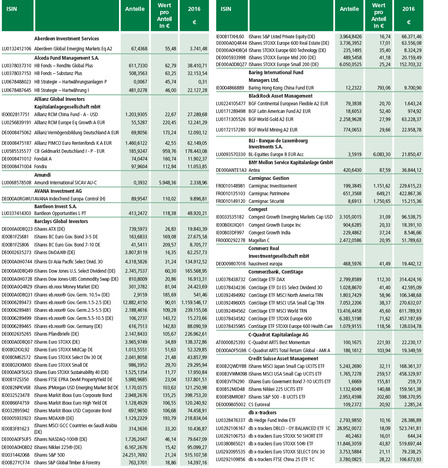 Die Bewertung der dem Umlaufvermögen zugeordneten Aktien erfolgt nach dem strengen Niederstwertprinzip. Sie werden zum Zeitwert, höchstens jedoch zu Anschaffungskosten, angesetzt. Wurden Aktien gleicher Art und Gattung zu unterschiedlichen Anschaffungskosten erworben, so wurde daraus ein Durchschnittsanschaffungswert gebildet. Die Zeitwerte wurden anhand der Börsenwerte zum 31.12.2016 ermittelt. Insgesamt beträgt die Abschreibung bei sechs Papieren 254 Tausend Euro. Die Zuschreibungen bei zwei Papieren beträgt 6 Tausend Euro.