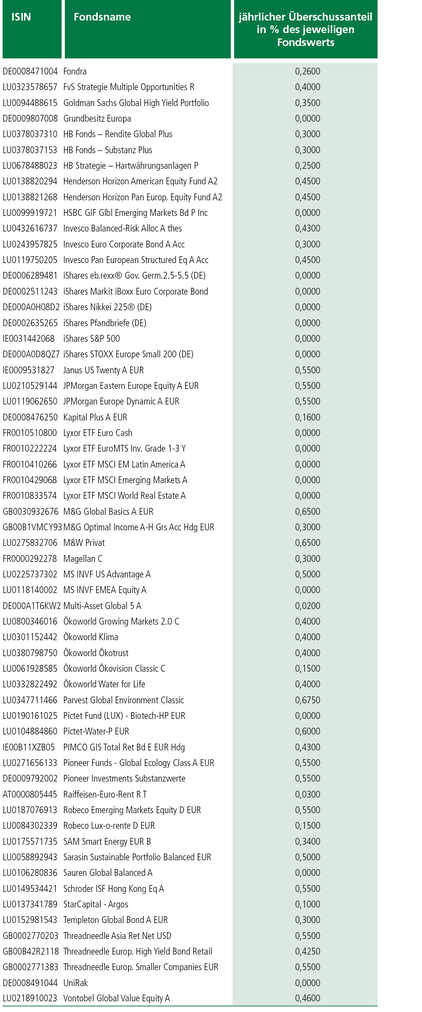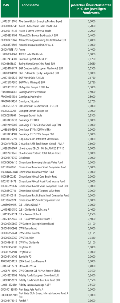 Die sich aus nachstehender Tabelle ergebenden Beitragsanteile werden dem Fondsguthaben zugeführt: