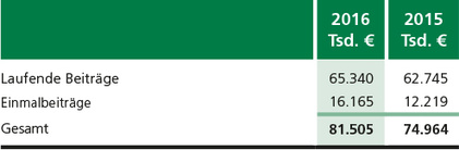 Im Geschäftsjahr 2016 wurden folgende Versicherungsarten für den Neuzugang angeboten: