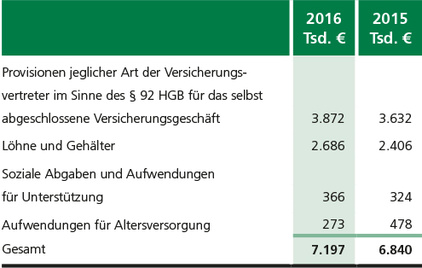 Die Bezüge des Aufsichtsrates betrugen für 2016 16 Tausend Euro. Dem Vorstand wurden für die Tätigkeit im Jahr 2016 Gesamtbezüge in Höhe von 739 Tausend Euro gewährt. Für die Prüfung des Jahresabschlusses wurden 72 Tausend Euro zurückgestellt. Die Aufwendungen für sonstige Beratung betrugen 10 Tausend Euro.