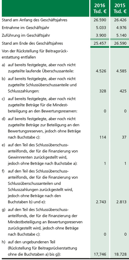 Die Rückstellung für erfolgsabhängige Beitragsrückerstattung entwickelte sich wie folgt: