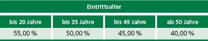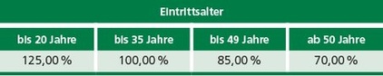 Ist anstelle des Sofortrabattes ein Todesfallbonus vereinbart, so erhöht sich die für den Todesfall versicherte Summe um den Prozentsatz gemäß nachfolgender Tabelle (der Todesfallbonus ist bei Verträgen gegen Einmalbeitrag obligatorisch):