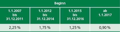 Verträge gegen Einmalbeitrag mit Beginn ab 01.01.2017 und einer Versicherungsdauer bzw. Aufschubzeit ab vier Jahre erhalten einen Zinsüberschusssatz von 0,90%.
