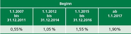 Die Rückstellungen für Pensionen zum 31.12.2016 wurden nach dem modifizierten Teilwertverfahren mit einem Renten- und Gehaltstrend von 2,0 % entsprechend der Zielvorgabe der EZB für Preisstabilität bei einer maximalen Inflationsrate von 2,0 %, und unter Zugrundelegung der Richttafeln 2005 G von Prof. Klaus Heubeck ermittelt. Als Rechnungszins wurde der von der Deutschen Bundesbank veröffentlichte Referenzzinssatz für Laufzeiten von 15 Jahren in Höhe von 4,03 % verwendet.