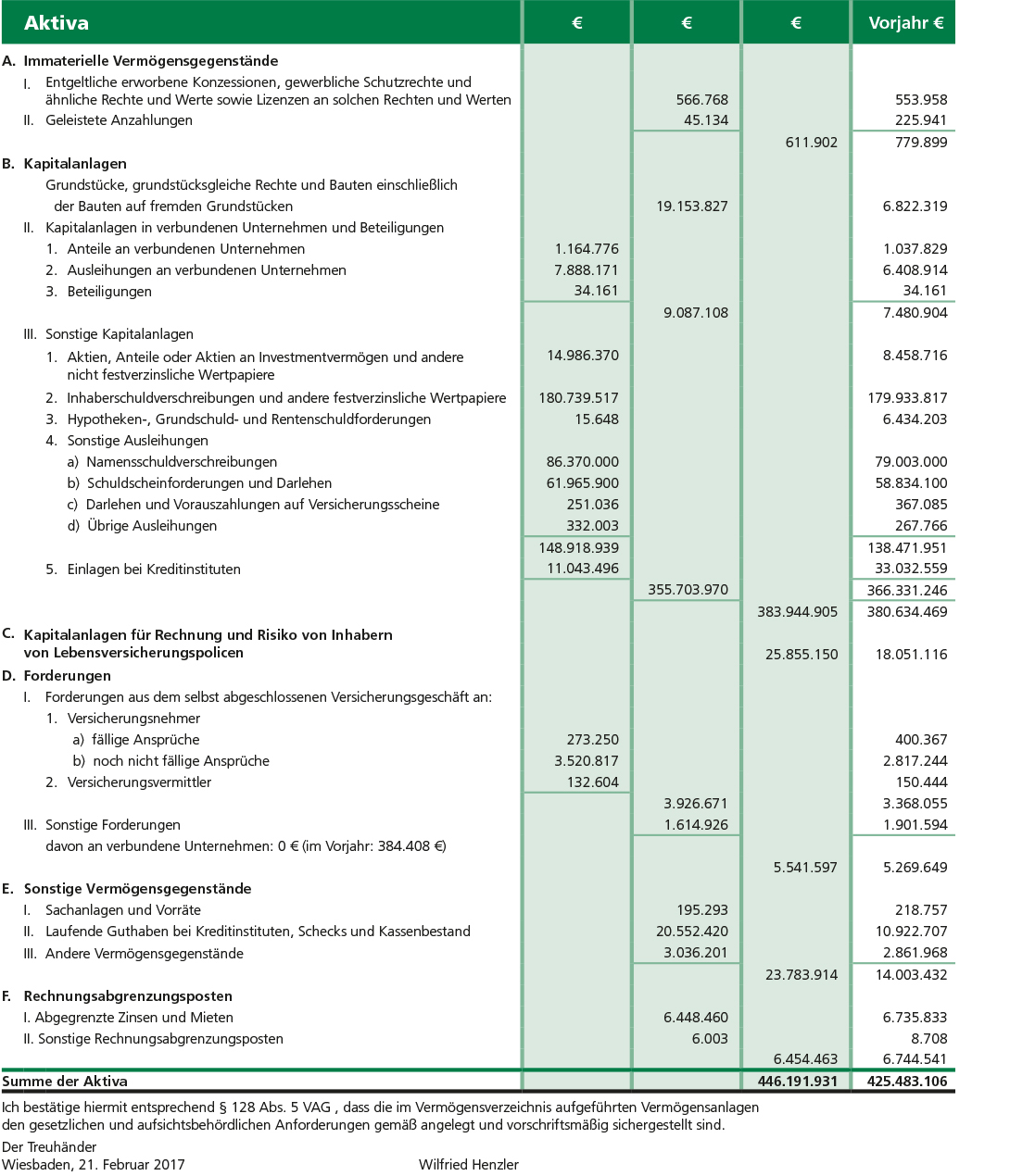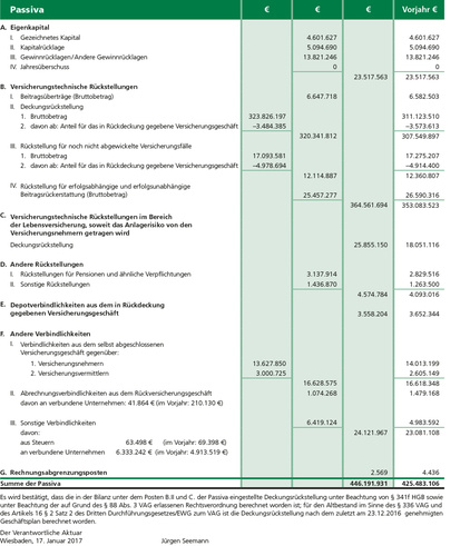 Jahresbilanz zum 31. Dezember 2016