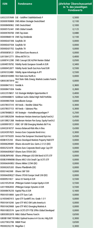 10 % der Beitragsanteile aus der Todesfallabsicherung werden als Risikoüberschuss dem Fondsguthaben zugeführt. Für bis zum 31.12.2011 abgeschlossene Versicherungen beträgt der Risikoüberschuss 30 %.