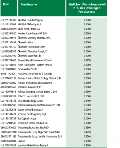 Die sich aus nachstehender Tabelle ergebenden Beitragsanteile werden dem Fondsguthaben zugeführt: