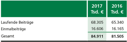 Im Geschäftsjahr 2017 wurden folgende Versicherungsarten für den Neuzugang angeboten: