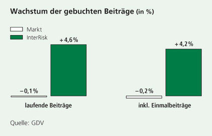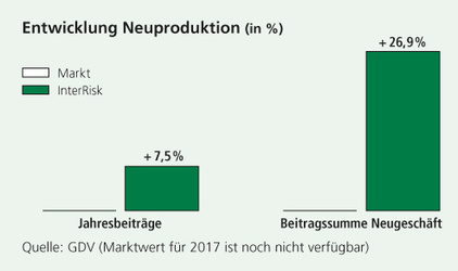 Dank unserer im 4. Quartal 2017 neu eingeführten und sehr gut angenommenen Risikoversicherungstarife, die mit Beginn des Jahres 2018 um die Variante“ XXL plus“ mit Sofortleistungen bei Krebs, Herzinfarkt und Schlaganfall ergänzt wurde, erwarten wir eine deutliche Belebung in unserem Kerngeschäft. Darüber hinaus sehen wir uns wegen der unverändert starken Produktion der aktuellen Berufsunfähigkeitsversicherungen insgesamt im Bereich biometrischer Absicherung gut aufgestellt. Dies wird unterstützt durch unsere verlässliche Geschäftspolitik: Die Gewinnbeteiligung für Risikolebens- und Berufsunfähigkeitsversicherungen in Form eines Sofortrabattes, der direkt mit den Zahlbeiträgen verrechnet wird, bleibt auf dem seit dem Bestehen der InterRisk unverändert hohen Niveau.
