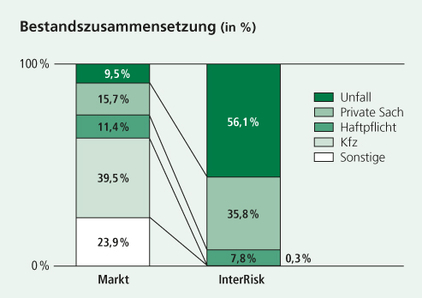 Das Ergebnis der normalen Geschäftstätigkeit belief sich auf 23,3 Millionen € nach 18,9 Millionen € im Vorjahr. Dies geht insbesondere zurück auf die um 3,1 Millionen € niedrigere Dotierung der Schwankungsrückstellung. Außerdem profitierte die InterRisk von dem bei deutlich gestiegenem Bestand unverändert günstigen Schadenverlauf. Dies konnte auch das wegen des gesunkenen Beteiligungsertrags schwächere Kapitalanlageergebnis kompensieren.