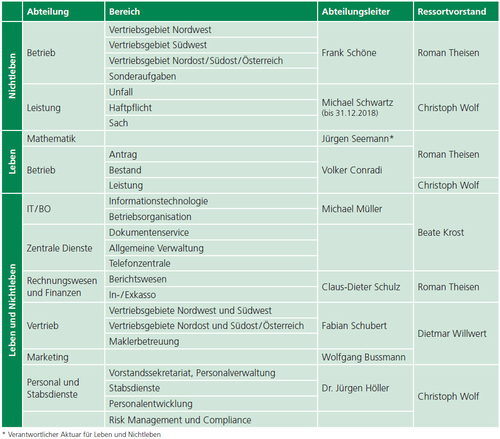 Die InterRisk ist wie folgt nach Vorstandsressorts, Abteilungen und Fachbereichen organisiert: