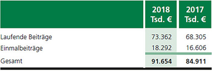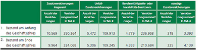 Im Geschäftsjahr 2018 wurden folgende Versicherungsarten für den Neuzugang angeboten: