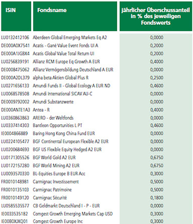 10 % der Beitragsanteile aus der Todesfallabsicherung werden als Risikoüberschuss dem Fondsguthaben zugeführt. Für bis zum 31.12.2011 abgeschlossene Versicherungen beträgt der Risikoüberschuss 30 %.