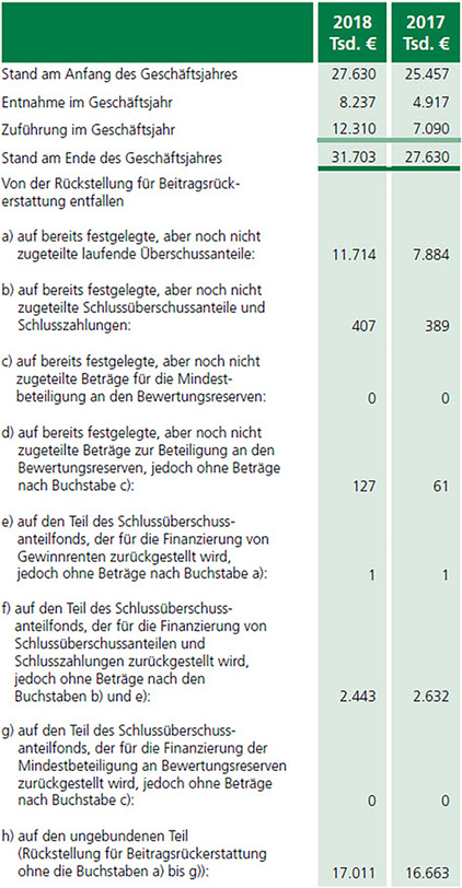 Die Rückstellung für erfolgsabhängige Beitragsrückerstattung entwickelte sich wie folgt: