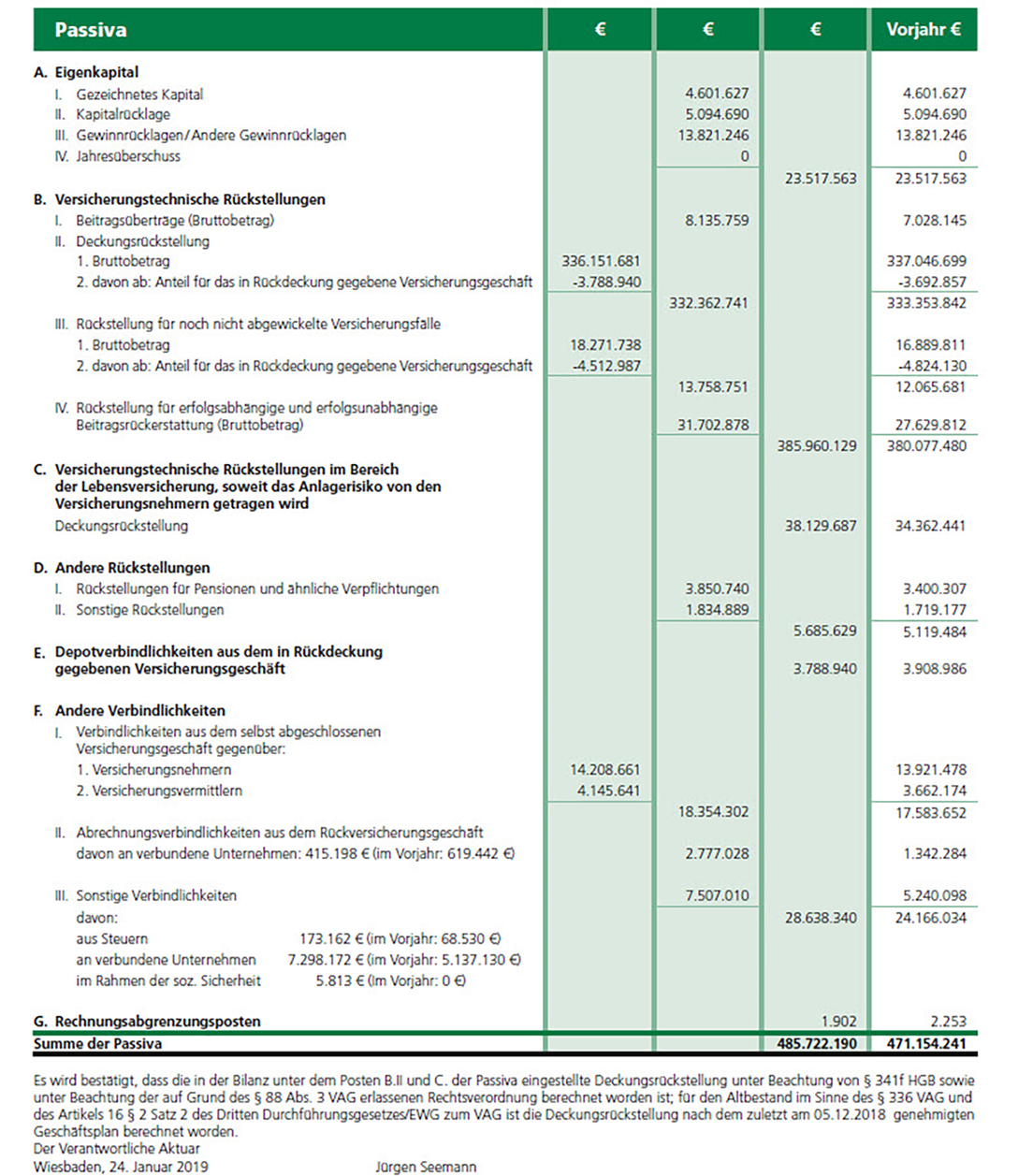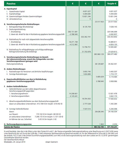 Jahresbilanz zum 31. Dezember 2018