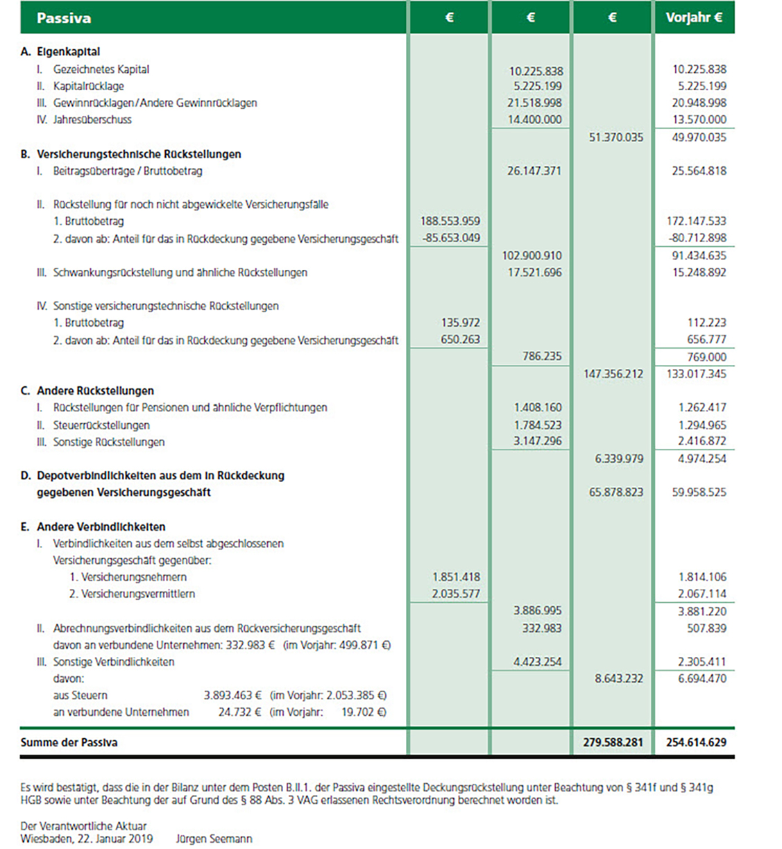 Jahresbilanz zum 31. Dezember 2018