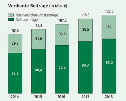 Nachdem in beiden Vorjahren mit rd. 14 Mio € ein Neuzugang auf Rekordniveau erzielt werden konnte, wurde im Geschäftsjahr 2018 mit 13,0 Mio Neuprämie ein zwar schwächeres, aber dennoch erfreuliches Ergebnis im Rahmen der Erwartungen erzielt.