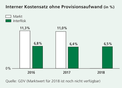 Die Aufwendungen für den Versicherungsbetrieb nahmen um 5,7% auf 37,3 Mio € zu. Da die verdienten Beiträge minimal stärker stiegen, verharrte die Brutto-Kostenquote mit einem Rückgang von 0,1% auf 30,6% annähernd auf Vorjahresniveau. Dagegen verschlechterte sich der interne Kostensatz ohne Provisionsaufwand von 6,4% im Vorjahr geringfügig auf 6,5%.