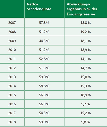 In Bezug auf den Eintritt größerer Schäden begrenzen wir dieses Risiko durch Rückversicherungsverträge, die ausschließlich bei Rückversicherern mit hervorragender Bonität bestehen. Für Zwecke der HGB-Rechnungslegung dient darüber hinaus eine hohe Schwankungsrückstellung dem Ausgleich von Schwankungen im Schadenverlauf. Für eingetretene, aber noch nicht abschließend regulierte Versicherungsfälle bilden wir Rückstellungen, die sich jeweils am oberen Ende der Erwartungen orientieren. Unsere vorsichtige Reservierungspolitik zeigt sich auch an den sehr positiven Ergebnissen aus der Abwicklung von Vorjahresschäden. Die Abwicklung der Rückstellungen wird zudem ständig überwacht.