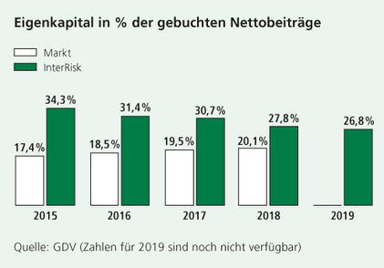 Für die InterRisk zeigt sich, dass die Konzentration auf biometrische Risiken, verbunden mit einem vergleichsweise geringeren Einfluss der Kapitalmarktrisiken auf einen kleineren Bestand an langfristig zu bedeckenden Garantien, gerade für die seit dem Jahr 2016 geltenden risikobasierten Eigenkapitalregelungen einen geschäftspolitischen Vorteil darstellt.