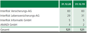 Darüber hinaus waren zum 31.12.2020 bei der InterRisk Versicherungs-AG 6 Auszubildende und duale Studenten beschäftigt.