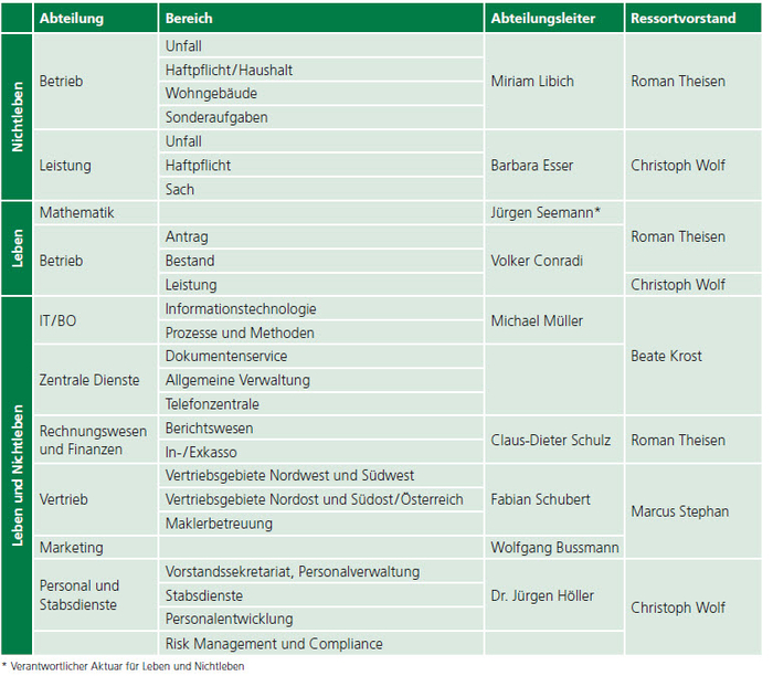 Die InterRisk ist wie folgt nach Vorstandsressorts, Abteilungen und Fachbereichen organisiert: