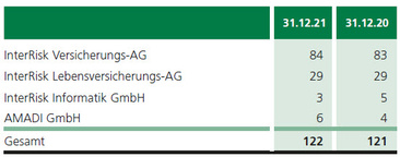 Darüber hinaus waren zum 31.12.2021 bei der InterRisk Versicherungs-AG 7 Auszubildende und duale Studenten beschäftigt.