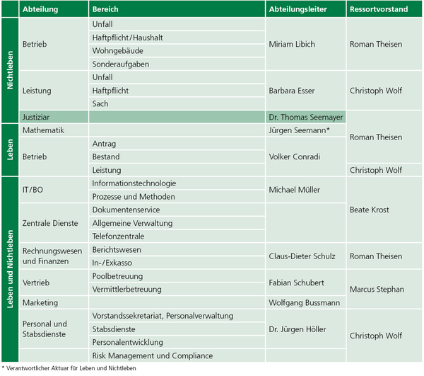 Die InterRisk ist wie folgt nach Vorstandsressorts, Abteilungen und Fachbereichen organisiert: