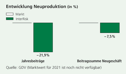 Die InterRisk behält ihren Fokus auf die Absicherung des Todesfall- und Invaliditätsrisikos bei. Dank preisgünstiger Tarife mit variantenreichen und führenden Bedingungen im Bereich biometrischer Absicherung erwartet sie, ihren Marktanteil in diesem Segment wie in den Vorjahren weiter ausbauen zu können. Dabei profitieren die Kunden vom sparsamen und verlässlichen Wirtschaften: die Gewinnbeteiligung für Risikolebens- und Berufsunfähigkeitsversicherungen in Form eines Sofortrabattes, der direkt mit den Zahlbeiträgen verrechnet wird, bleibt auf dem seit dem Bestehen der InterRisk unverändert hohen Niveau. Basierend auf den Erfahrungen seit Anfang 2020 wird auch für das dritte Jahr der Pandemie keine Übersterblichkeit erwartet.