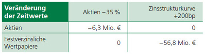 Aus dem in diesem Zusammenhang zuletzt durchgeführten Stresstest nach BaFin Vorgaben ergeben sich folgende Sensitivitäten zum Stichtag 30.9.2021: