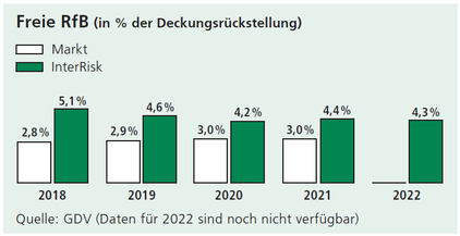 (freie RfB) fiel aufgrund einer um 2,8 Millionen € niedrigeren Zuführung im Verhältnis zur gesamten RfB von 55,0 % auf 52,0 %.