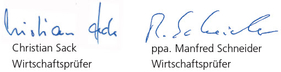 Der für die Prüfung verantwortliche Wirtschaftsprüfer ist Manfred Schneider.