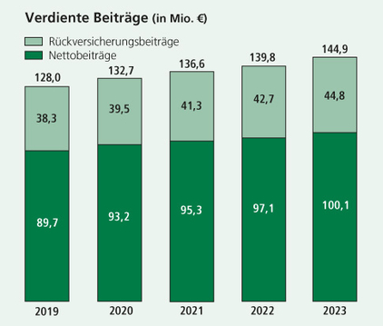 Die verdienten Bruttobeiträge wuchsen um 3,7 % auf 144,9 Millionen €. Bei stabiler Selbstbehaltsquote stiegen die verdienten Nettobeiträge um 3,1 % auf jetzt 100,1 Millionen €.