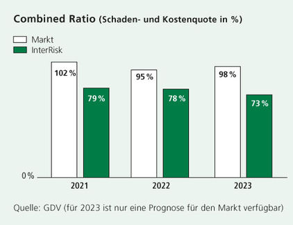 Auch die im Jahr 2023 fortgesetzt hohe Inflation und insbesondere die Preissteigerungen bei Baumaterialien sowie Bau- und Handwerkerleistungen führen zu zusätzlichen finanziellen Risiken. Die InterRisk bewertet diese Risiken bei der Bildung der versicherungstechnischen Rückstellungen vorsichtig und angemessen.