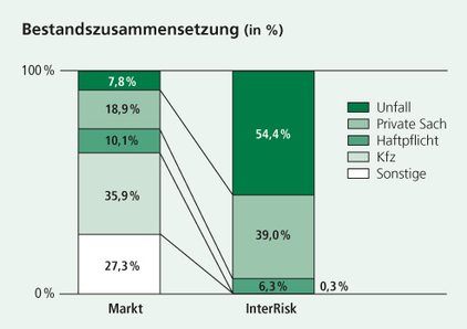 Die gebuchte Bruttoprämie erhöhte sich von 140,2 Millionen € auf 146,4 Millionen €. Damit konnte das Wachstum der InterRisk gegenüber dem Vorjahr von 2,5 % auf 4,4 % gesteigert werden. Noch höher lag das Branchenwachstum mit 6,7 %, das allerdings auch von Prämienerhöhungen in Sparten wie Transport und Industrie getrieben wurde, die von der InterRisk nicht angeboten werden.