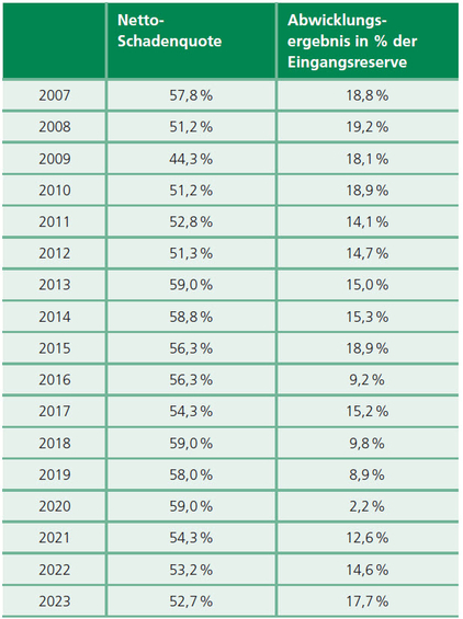 Der Abwicklungsgewinn aus der Vorjahres-Schadenrückstellung verbesserte sich erheblich um 40,1 % auf 33,9 Millionen €. Einschließlich des Abwicklungsergebnisses fiel die Gesamtschadenquote brutto von 55,2 % auf 52,2 %.
