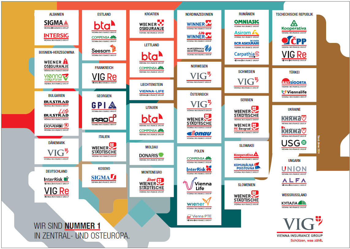Die Vienna Insurance Group (VIG) mit Sitz in Wien ist die führende Versicherungsgruppe in der Gesamtregion Zentral- und Osteuropa (CEE). Mehr als 50 Versicherungsgesellschaften und Pensionskassen in 30 Ländern bilden eine Gruppe mit langer Tradition, starken Marken und hoher Kund:innennähe. Rund 29.000 Mitarbeiter: innen betreuen rund 28 Millionen Kund:innen.